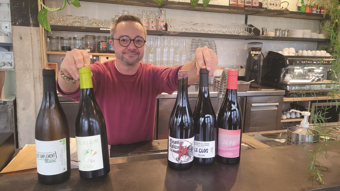 Sébastien Boullic, le sommelier du restaurant L’Isolé à Montreuil (93) aime faire découvrir ses trouvailles bio à ses clients. ©Nelly Rioux