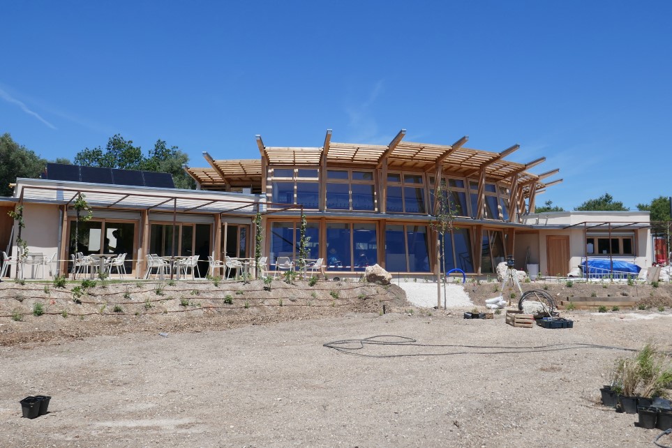Le bâtiment bioclimatique est doté d’une ossature bois et construit en béton de chanvre . ©Restauration21