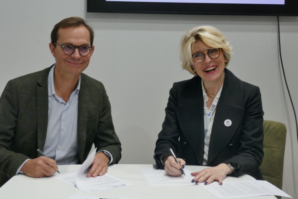 Julien Dubourg, président exécutif de Citeo Pro, Catherine Quérard, présidente du GHR, ont signé le partenariat le 5 novembre à EquipHotel. ©Restauration21