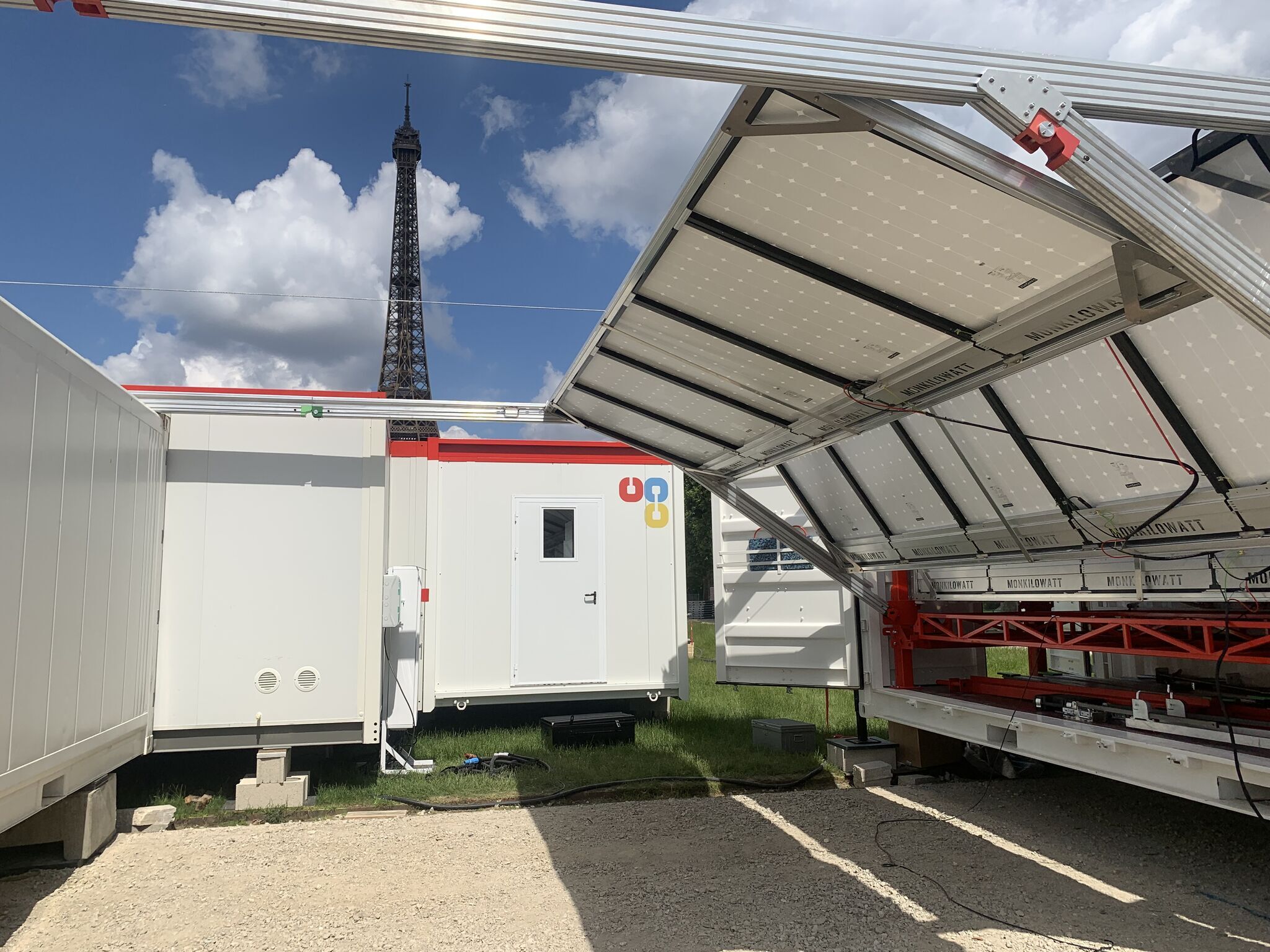 Les panneaux solaires se déploient sur la cuisine, minimisant l’emprise au sol de la solution technique. ©Locacuisines