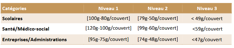 Les deux référentiels comprennent trois niveaux de labellisation (1 étoile, 2 étoiles et 3 étoiles) et une mention spéciale, une obligation de résultat via le calcul d’un taux de gaspillage à ne pas dépasser et des critères de moyens échelonnés en 3 niveaux d’ambition, organisés par domaines d’action correspondant aux différents activités de l’établissement et pondérés, comme l’explique encore le ministère, « de sorte à privilégier la prévention du gaspillage alimentaire ». Selon la note finale obtenue, l’établissement décroche 1,2 ou 3 étoiles. En dessous d’une note minimum, il n’est pas labellisé.
