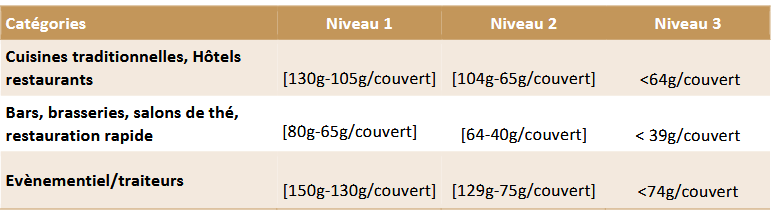 Notre remarque : Pourquoi la catégorie traiteur/traiteur événementiel relève-t-elle de la catégorie « restaurant » alors que ces professionnels utilisent des laboratoires de production relevant « logiquement» pour leur part du référentiel « Unités de préparation » ?